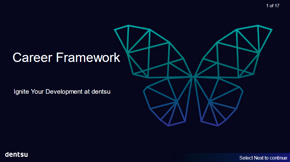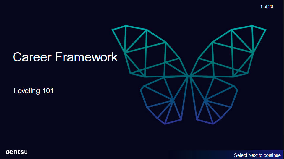 The stakeholders wanted to ensure that the information was broken down into easy-to-understand modules and determined the three topics would be Finding Your Path at dentsu, Ignite Your Development at dentsu, and Leveling 101.